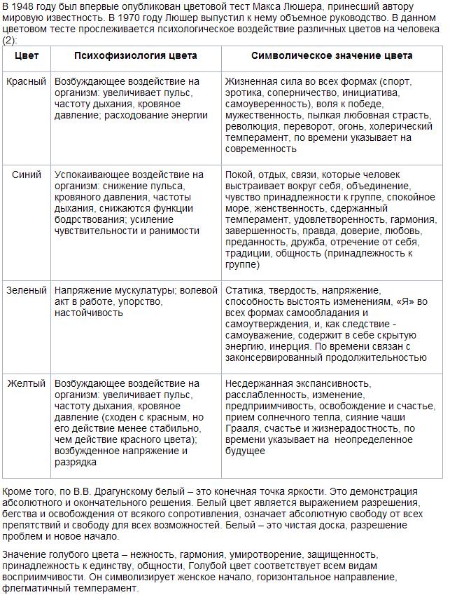 Misha писал(а):И чё ты с этим делать будешь? Красный - мужской, возбуждающий, а синий - женственный, успокаивающий (голубой, короче). А белый, я так понимаю, - вообще не цвет...