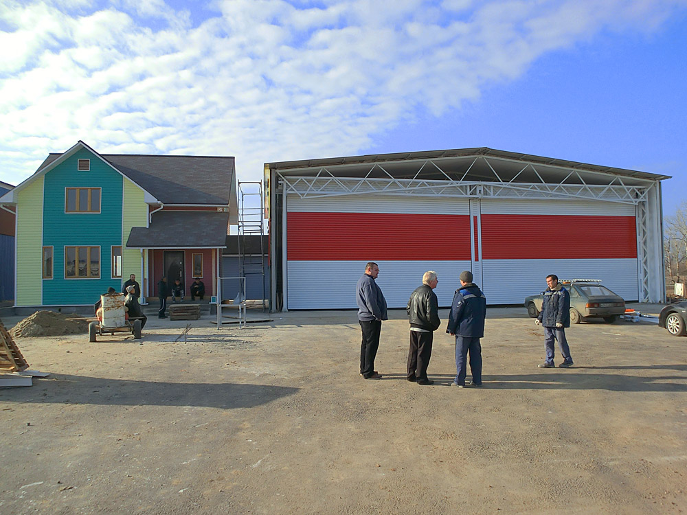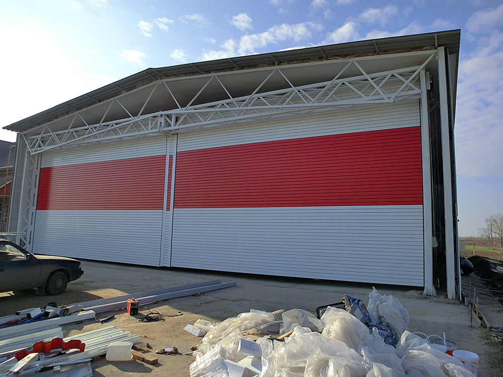 Нельзя ли продолжить? Ворота ангара готовы? Какая схема на таком проеме?