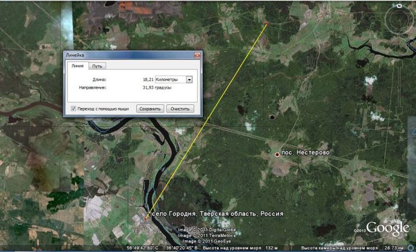Точка находится в 18 км от с. Городня, куда летел вертолет, т.е. в примерно 5 минутах подлетного времени.