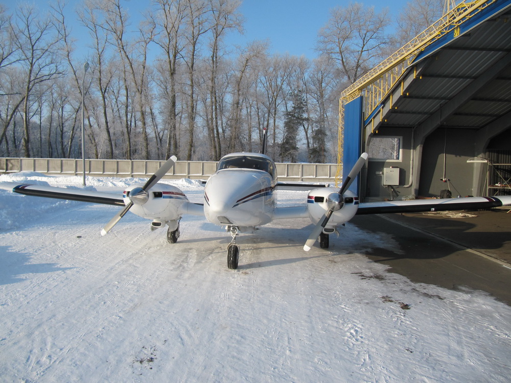 Поделившись впечатлениями о посадке и пробеге Ацтека, мы затолкали его в ангар. Длинный ангар вмещал стоящий там еврокоптер, за ним Як-52 и затем наш Ацтек.