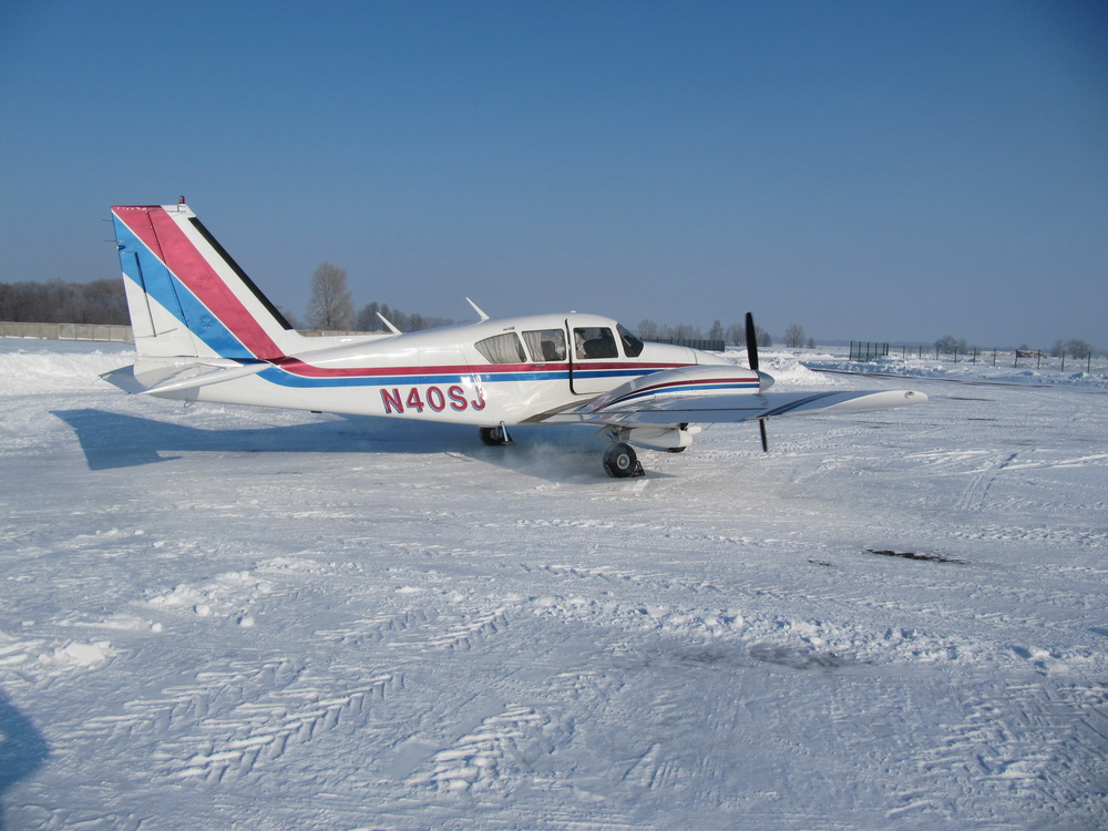 Держу минимальную скорость на прямой -80 узлов, аккуратно снижаюсь в просеку, прохожу на уровне середины деревьев и целюсь в торец полосы... прибираю газ, выравниваю самолет и касаюсь на первых метрах полосы, сразу по тормозам .... самолет стабилен и уверенно оттормаживается... и о чудо!! мы остановились ровно на половине полосы!! Вот это да! Самолет сел на триста метров! Класс!! Я был необычайно горд за Ацтек! Наверно это здорово смотрелось со стороны.)) Нам пришлось даже немного прорулить вперед, что бы повернуть на рулежку, которая была похожа на широкую траншею, самолет в аккурат вписывался по ширине, едва не касаясь крыльями сугробов. Это напомнило мне прилет в Кусино на Ан-2, когда примерно так же пришлось рулить , цепляя концами крыльев за высокие сугробы.