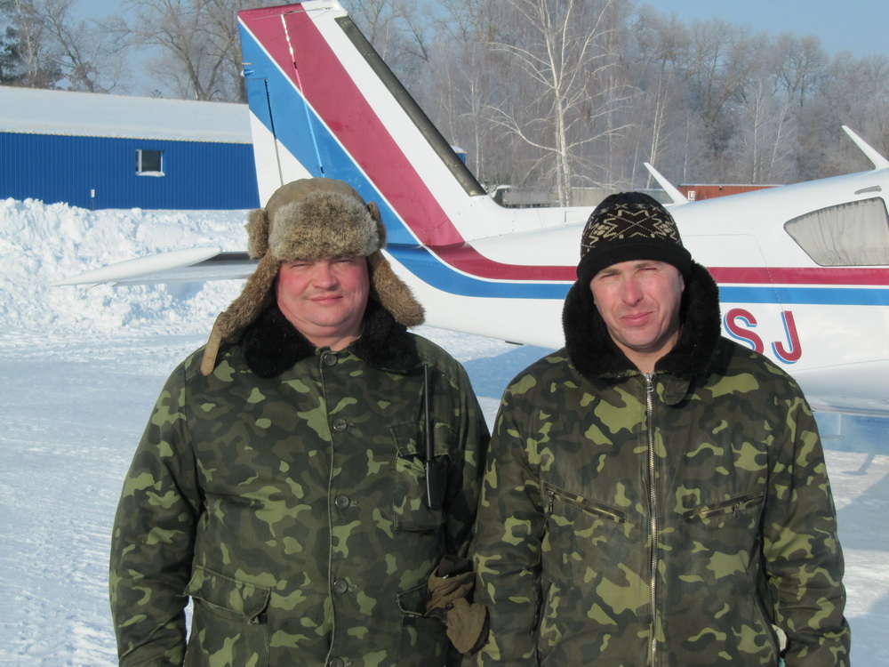 Аккумулятор был замезшим и слегка подсаженым, потому как забыл выключить на ночь питание интеркома. Пробую пустить левый двигатель. Винт тяжело прокручивается , но вспышек нет. Попробовал еще один раз, нифига... Аккумулятор начинает дохнуть. Делаю паузу и пробую запустить правый, вот с ним все и получилось, двигатель дал вспышку и заработал! Ура, теперь есть питания от генератора! Пробую левый двигатель-, есть запуск! Мороз мы победили... Оставляю самолет греться , вылезаю из кабины и прощаюсь с местными жителями,- спасибо вам дорогие мои, что вы делаете на аэродроме, поддерживаете его, строите и обслуживаете. А главное , что готовы и рады принимать гостей!