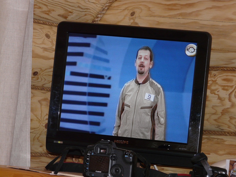 Уютно и тепло. Быстро разместившись по номерам, мы собрались в трапезной. Там мы познакомились(кто ещё не был знаком) с очаровательной нашей форумчанкой Катериной (meribel). Она с семьёй тоже остановилась в этом отеле. У меня на долгие посидушки после дальней дороги сил не осталось и я пошёл в номер. По телеку показывали ПилотТВ.