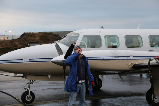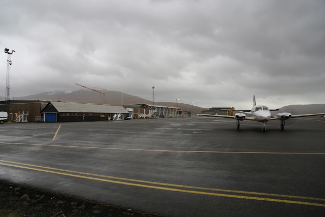 Итак, нас покинул главный синоптик. Но погода с тех пор, как он дал нам крайний прогноз не изменилась. Хорошего в этом ничего не было. Встречный ветер не изменил своего направления и дул также строго в нос со скоростью от 40 до 50 узлов. При таком ветре, дойдя до Бергена, мы в лучшем случае заглохли бы на полосе, а в худшем до нее. Такая перспектива не устраивала даже таких несерьезных пилотов, как я и Егор. Решено было сделать промежуточную посадку на Фарерских островах. Все как обычно, запрос условий, запуск, руление, взлет, все просто и без напряга. А вот подход и посадка были сложными. Из облаков мы вывалились почти на минимуме, лил сильный дождь и видимость была не очень хорошей. Проваливаться никак нельзя, потому что под нами должна была быть скала. Шли строго по схеме и, о чудо, межу двумя горами появилась полоса. Далее посадка в условиях сильной болтанки, вызванной рельефом местности. После Сен-Мартена это был самый красивый заход. Я считаю, что нам повезло что ветер был встречным, и мы попали на Фарерские острова. Температура была около +7 с. после -30, в Канаде это казалось манной небесной. Правда у них и летом +7 так что особо не позагораешь. В течении часа мы заправили самолет, перекусили, подали план и полетели дальше в Берген. В планах было вечером пить пиво в Лаппеенранте.
