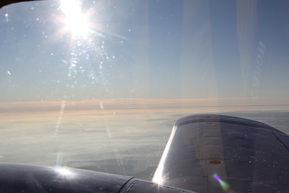 После взлета я довернул на курс  90*, выставил режимы и пошел в набор. Погода была отличной, набрав 7500 , я перевел самолет в горизонт и занялся печкой, которая на земле начала работать, но при взлете выключилась, минут через 10, мне все же удалось вывести на нармальный режим работы и в самолете сразу потеплело... Красота! Я сначала расстегнул куртку, а потом и вовсе ее снял... Абсолютный кайф! Солнце, небольшие горы , самолет ... и в нем тепло и уютно! Одиночество еще больше оттеняло все происходящее,- я лечу на встречу приключениям, не зная что будет завтра и после завтра, где я буду и с кем... мне все это определенно нравилось!