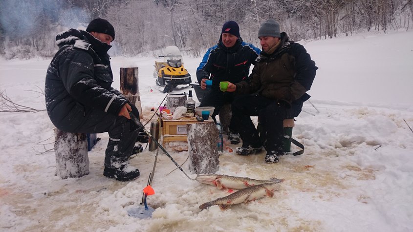 спустились к реке, за бурились, поставили зимние жерлици на щуку,