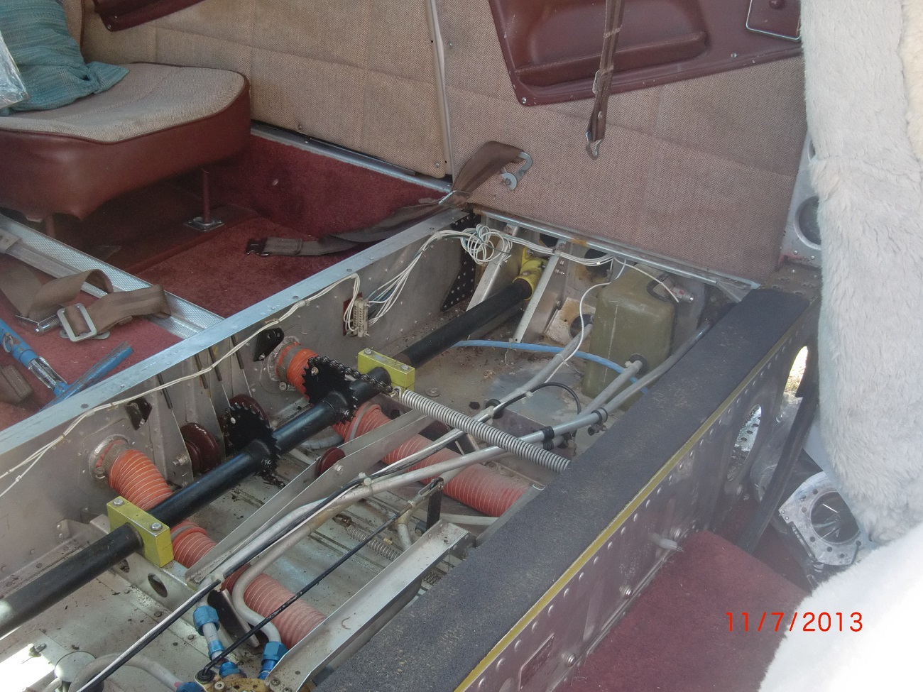 Обнаружил интересную фотку времён сборки самолёта. Это тот самый "ящик" расположенный под сиденьями среднего ряда. Под черной наклейкой - центропланная часть лонжерона. Видно также вал выпуска закрылков (черный), трубы обогрева заднего ряда (оранжевые), топливные трубки и электрический топливный насос (в правом верхнем углу).