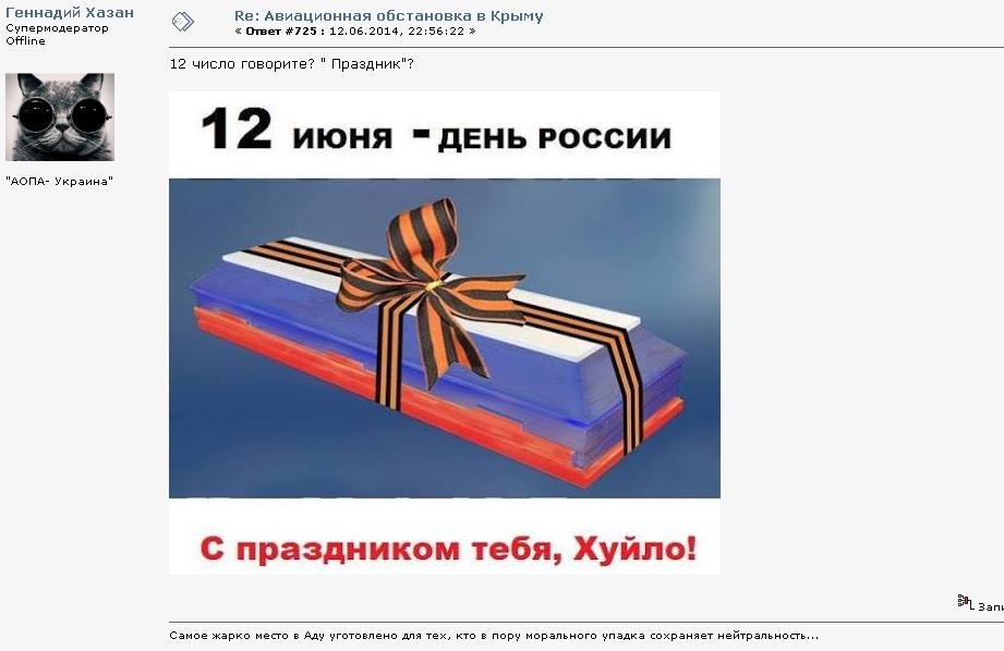 Аватарку стёр, что еще от меня требуется?ksv писал(а):Володь, а фашисткая эмблема на аватарке тебя не смущает?502 писал(а):Гена отдыхает недельку.
