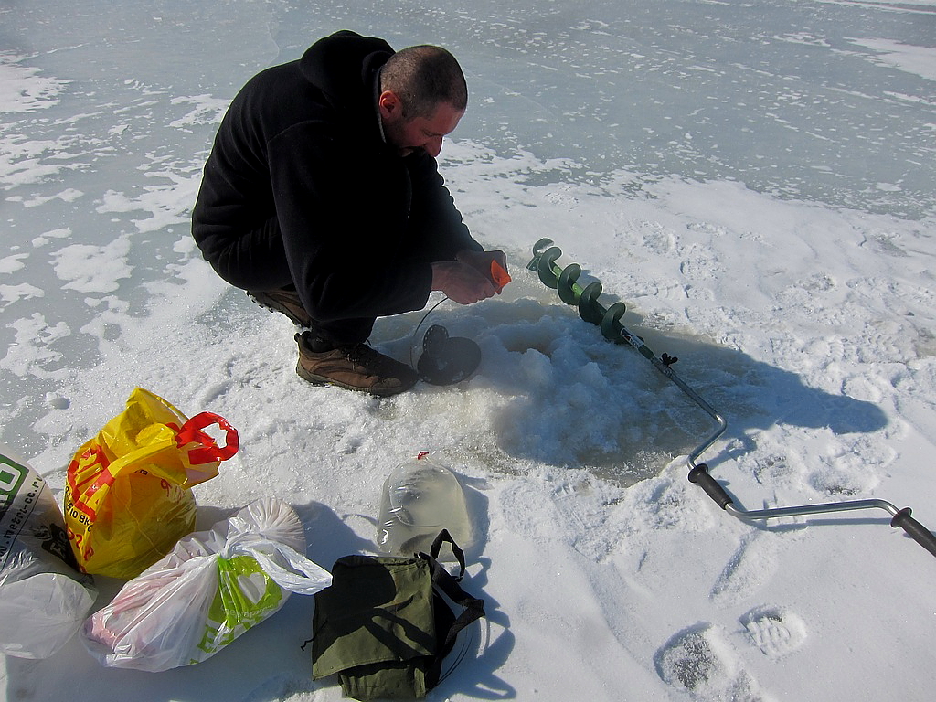 Короче, стоит лед стеной и мы с Лешей напустили кислорода под него уже больше чем надо. Если рыба снизу есть, она уже счастливая должна сама выпрыгивать нам в руки в благодарность.