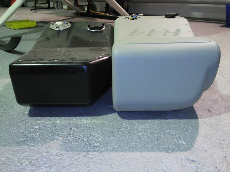Мои товарищи из Казани недавно начали производить новые баки увеличенной емкости под задние сиденья R-44-каждый по 60 литров. Они уже установили их на один борт моим коллегам у нас в Нижнем (см фото). В скором времени собираюсь их заказать для вертолета, на котором летаю, если продадим свой комплект предыдущей модели баков по 45 литров с проводкой, пультом управления, с функцией автоматического отключения насоса при окончании перекачивания.