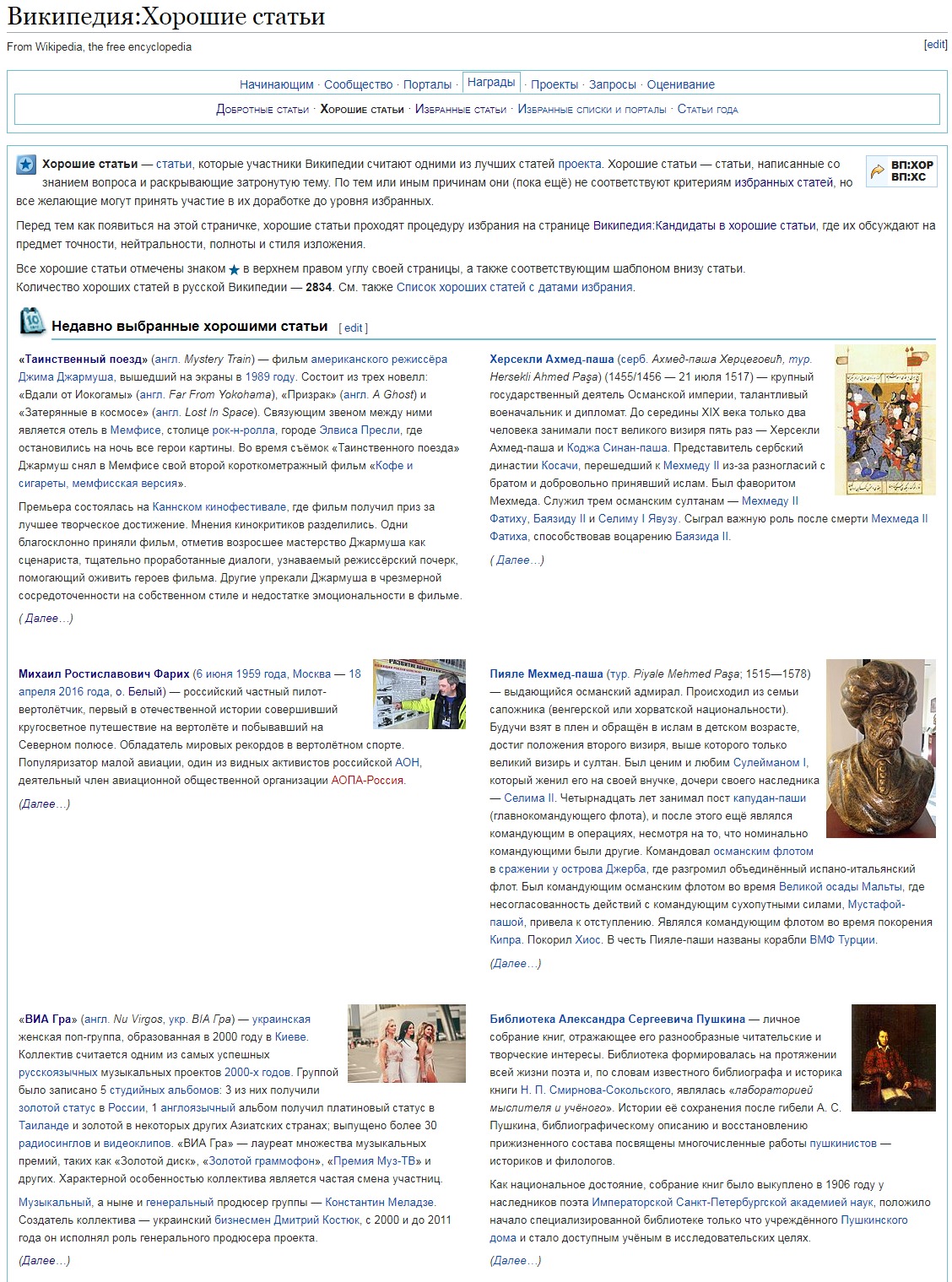 На текущий момент количество хороших статей в русской Википедии — 2834.