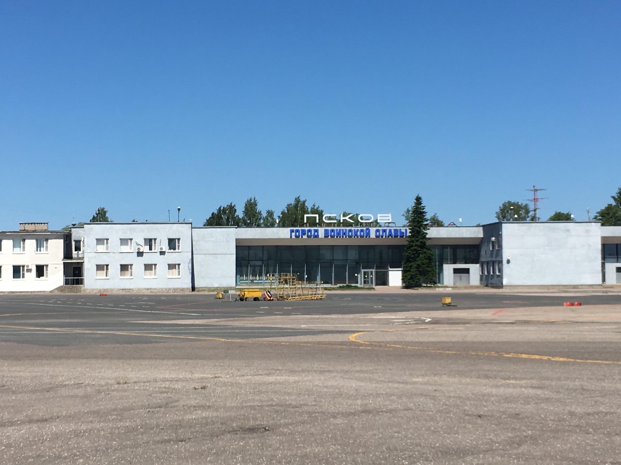 Прилетев в Псков, и выполнив визуальный заход, на глиссаде мы увидели большую пожарную машину, далее follow-me-car, маршал, в общем все по-взрослому. После нашего выхода из самолета, перед ним поставили большую зеленую табличку "зона таможенного контроля", нас посадили в микроавтобус и метров 20 мы проехали к терминалу. Дальше заполнили необходимые бумажки, пообщались с девушками, организовавшими нам прием и выпуск, а также таможню. Выяснилось, что Росавиация отобрала сертификат у компании Псковавиа, поэтому в настоящее время ни одного рейса из аэропорта г. Пскова не производится. Полоса принадлежит военным, а Посковавиа фактически без работы, и вот прилетают к ним легкие самолеты и вертолеты, как мы, тем и живут. Слушать все это было больно и горько.