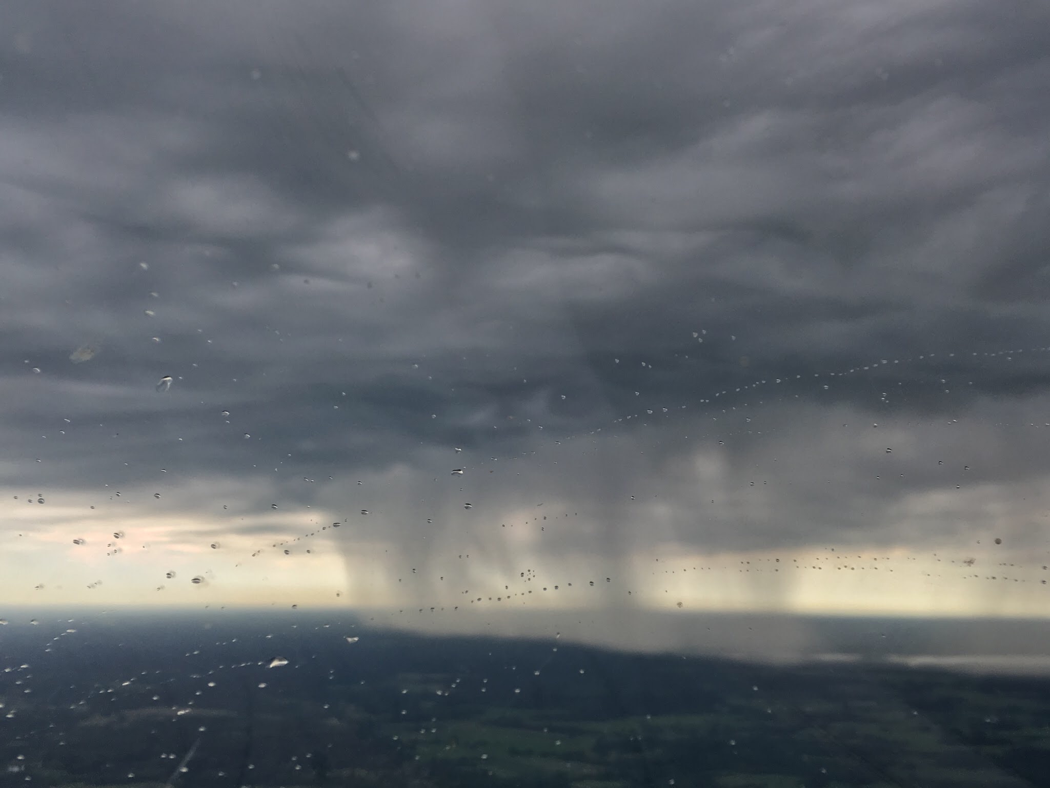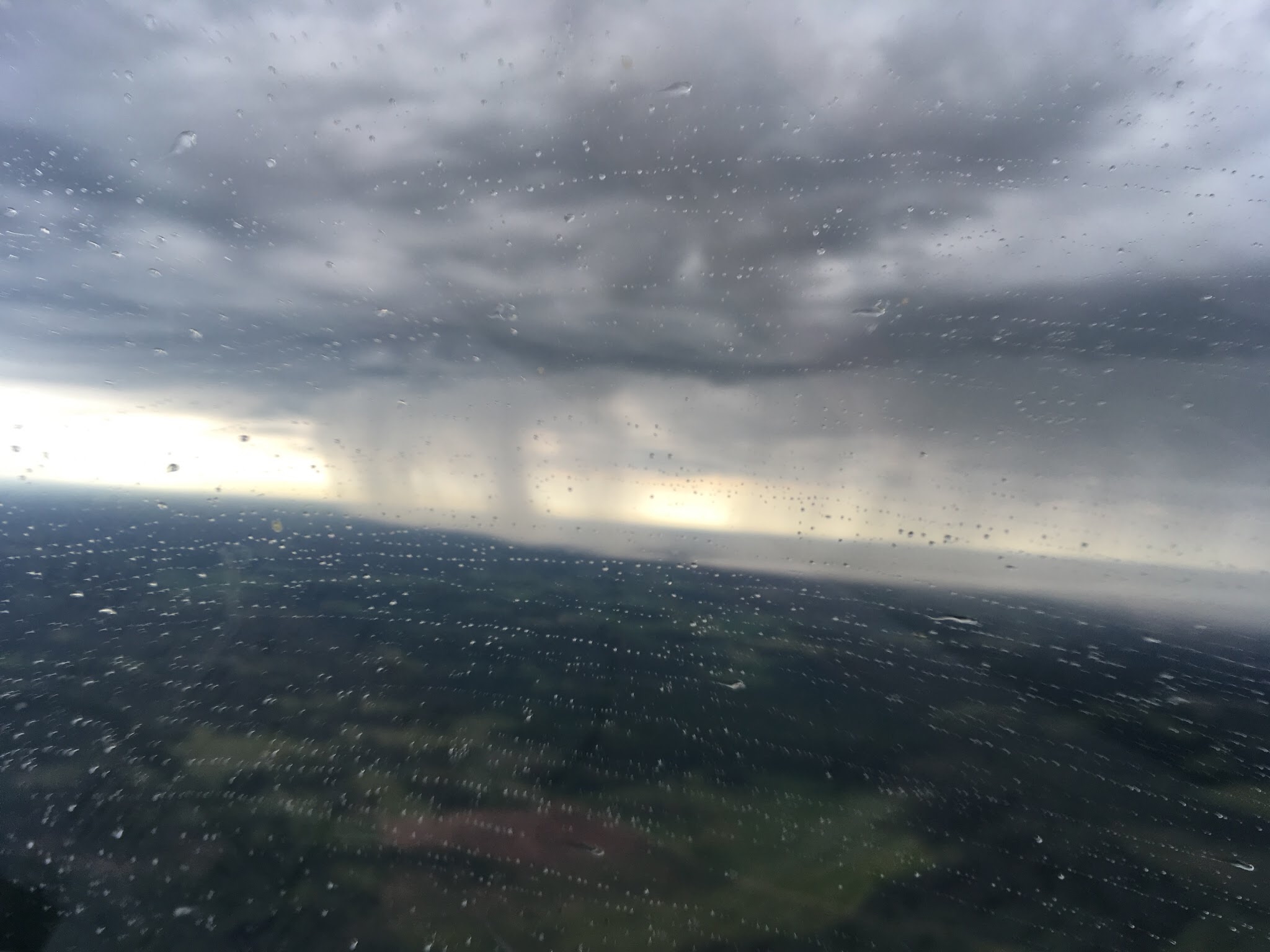 Сразу после взлета увидели очень красивую очаговую грозу. Это было конечно зрелище. Видимость отличная, видно пятно самой грозы, ливневые потоки, сверкающую молнию до земли, даже немного сквозь грозу видно, при этом мы летели в просвет, хоть и под дождем, обходя ее слева. К сожалению ни на видео ни на фото, молния не попала, да и вообще на фото не видно и половины той красоты, которую видишь во время полета, но какую-то картинку приложу.
