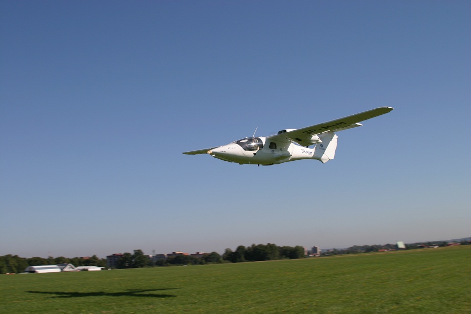 Не совсем понятен в данном случае мотив применения толкающих винтов. Мидель? Возможно. Еще к числу плюсов можно отнести существенно меньшую аэродинамическую асимметрию при отказе одного: обдувки крыла нет, соответственно и нет и разницы в подъемной силе. Т.е., вроде бы, более простое пилотирование на одном. Но с другой стороны: явно несколько большая взлетная дистанция, шум на местности, вибрации ВМГ. Или они их побороли?