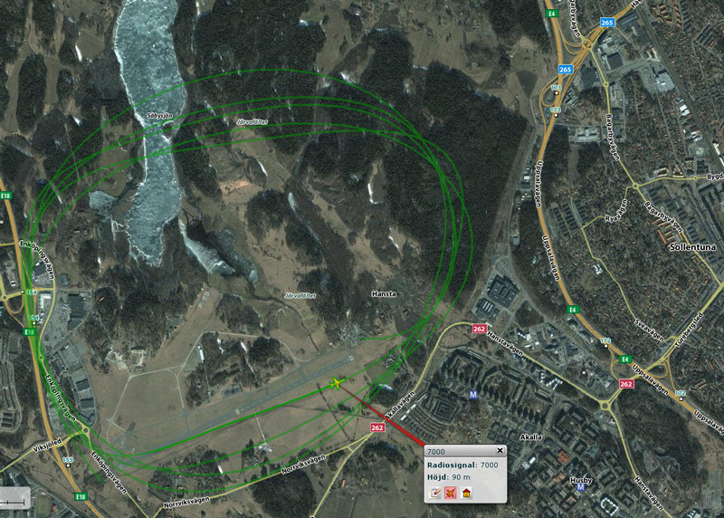 Все полёты вокруг Стокгольма можно посмотреть, если летал с транспондером, с задержкой в 5 часов. VFR устанавливается на 7000 по умолчанию, что немного мешает найти "себя", но если знаешь время вылета или пролёта, то не сложно, да и не так нас там много летает одновременно. Вчерашний свой полёт вот посмотрел и нашёл место с которого фотку сделал, прилагаю для сравнения. Программа в основном создана для старушек, желающих пожаловаться на пролетающих около их дома, для этого есть функция- размещение собственного домика на карте. Там всё по шведски, но если будет интерес- обращайтесь, переведу и поясню как пользоваться! очень прикольно вечером посмотреть где летал! :)