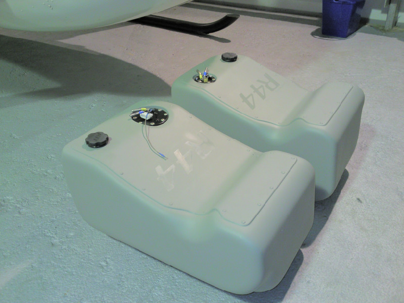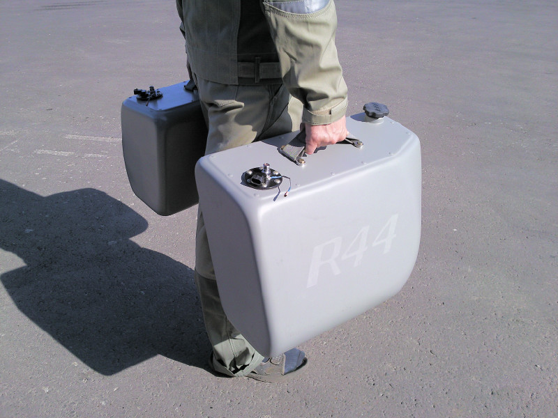 Мои товарищи из Казани недавно начали производить новые баки увеличенной емкости под задние сиденья R-44-каждый по 60 литров. Они уже установили их на один борт моим коллегам у нас в Нижнем (см фото). В скором времени собираюсь их заказать для вертолета, на котором летаю, если продадим свой комплект предыдущей модели баков по 45 литров с проводкой, пультом управления, с функцией автоматического отключения насоса при окончании перекачивания.