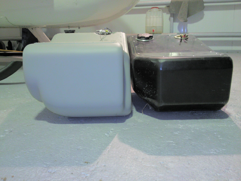 Первая - продумать вопрос обрезинивания внутренней поверхности баков или (что еще лучше) помещать внутрь резиновую емкость той же ёмкости, которая будет препятствовать разливу топлива в случае жестких посадок и возможных трещин в баках. Этот вопрос, я знаю, беспокоит и волнует многих владельцев Робинсонов. Некоторые летают с этими баками, но с болью в сердце. А иные и вовсе предпочитают возить алюминиевые канистры, как более надежное решение. Все-таки топливо находится в кабине...