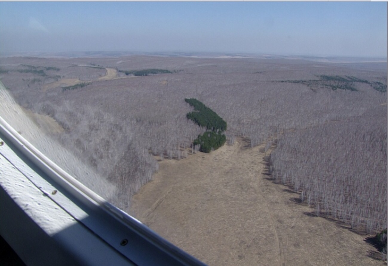 И вот Урал позади. Первый раз я попал в эти места когда перегонял Л-42 в Братск, было это весной, и это по моему лучшее время для полетов над Челябинской областью. Какое то неимоверное количество цветущих берез покрывает всю землю красным ковром. Фото это было сделано в 2009 с борта Л-42 и к сожалению очень плохо передает буйство красок. Такое я видел впервые в своей жизни, березовый ковер до горизонта.