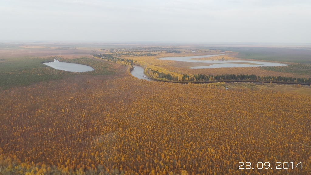 Что интересно, в этой глухомани с борта спокойно работает связь Мегафон, причем с 3G, вот что делает газ и нефть. Тут и там из леса торчат вышки, пересекаешь многочисленные газотрассы, пролетаешь компрессорные станции, жизнь кипит. Народное достояние.
