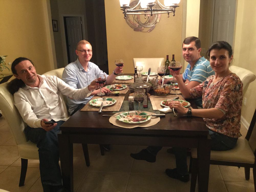 Наш "Русский Дом" в Америке Первые гости под флагом AOPA-Russia Шеф за работой И его помощник... Стейки на гриле шкворчат... Управдом зорко следит... За разговорами... Председатель ревизионной комиссии AOPA-Russia контролирует распил бюджета Представители Федерации Вертолетного Спорта РФ После десерта шефу можно и отдохнуть. До следующего приема гостей... Наслаждаемся рассказами о полетах в Исландии (Matthias Vogt) В общем, как-то так выступили... Все - в АОПУ!!!