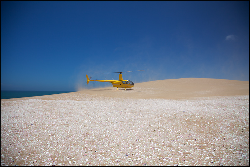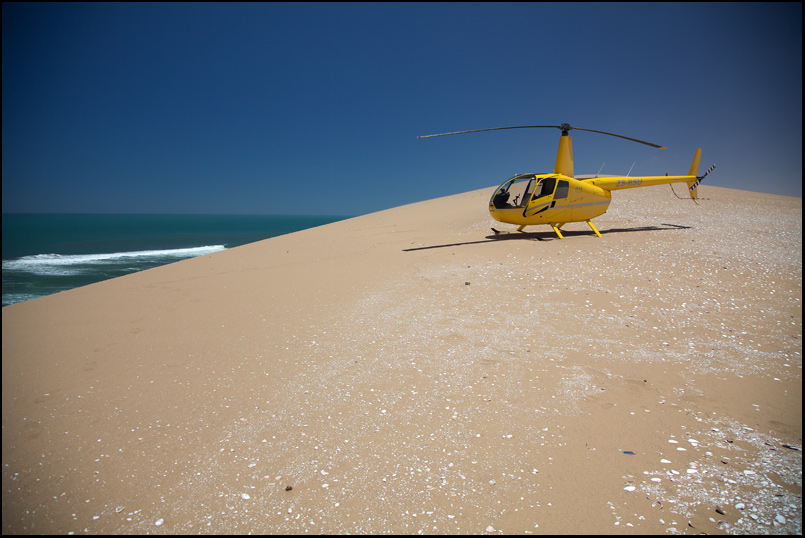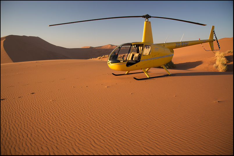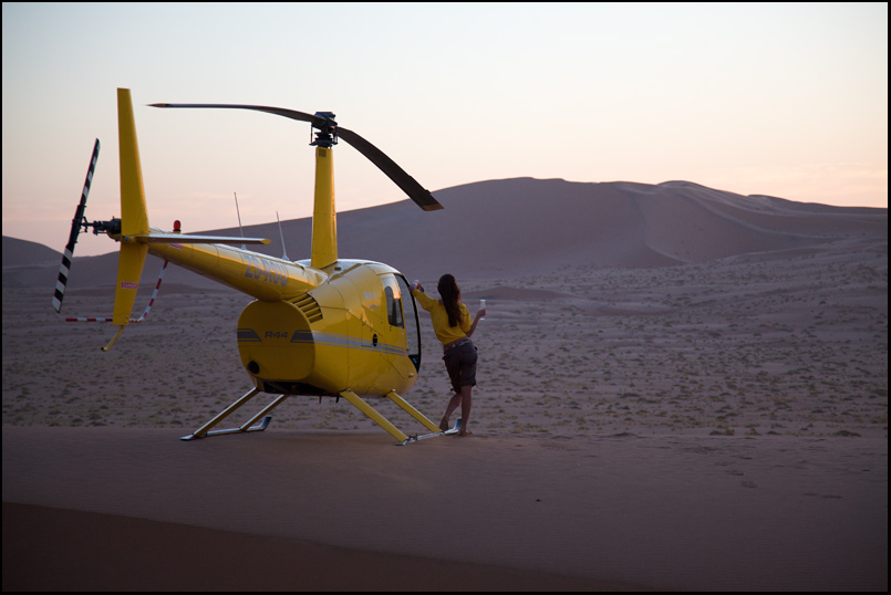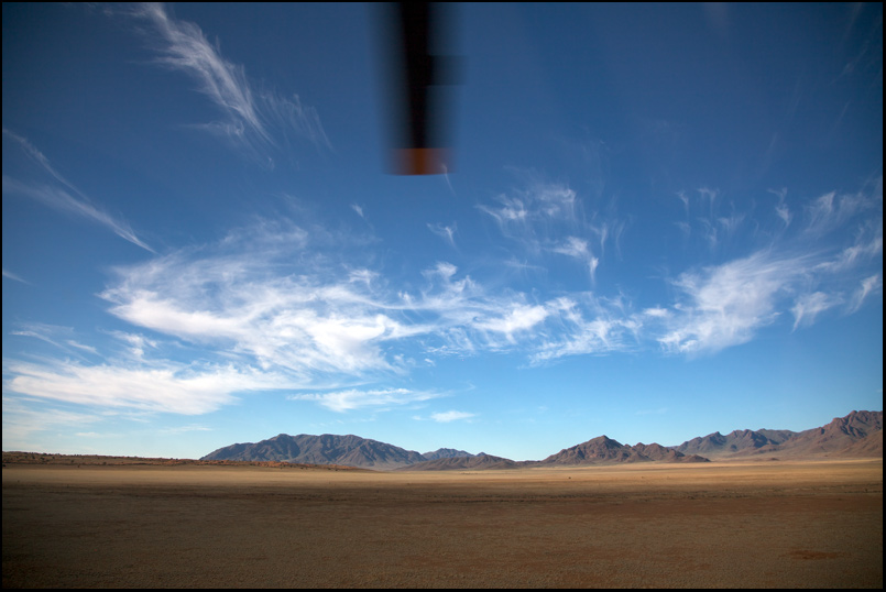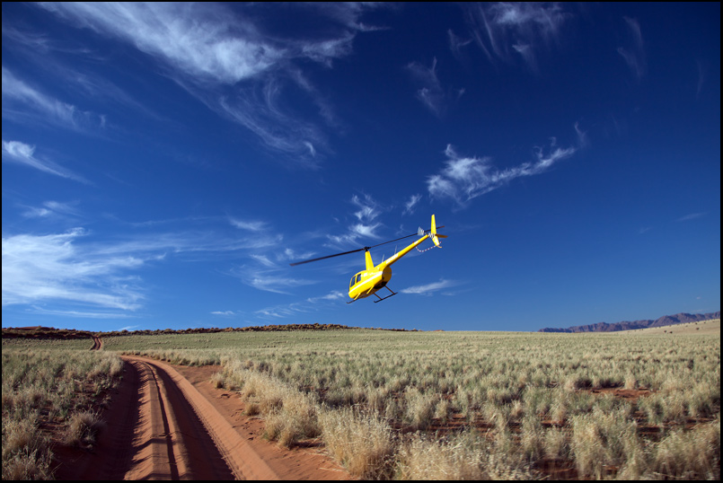 Т.к. Ботсвана отложена на другой раз, решено вернуться в ЮАР. Вертолет ведет себя прилично, ничего не горит и даже прыгающий датчик температуры двигателя почему-то пришел в себя. Топливный фильтр тоже не особо возникает. В конце-концов - дело привычки. А куда деваться? Попытка найти человека, который заменит датчик в пустыне Намиб увенчалась успехом, в принципе - если подождать 3 дня - человек и датчик приедут обязательно. Но 3 дней не было. Да и одного дня, проведенного в гамаке в центре пустыни уже хватило за глаза.