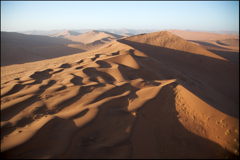 Отдельно - пустыня Намиб. Самая древняя из существующих - ей около 80 миллионов лет, т.е. динозавров еще не было, а пустыня эта уже была. Особенно хорошо это ощущается, если выбраться в ее центр, под вечер, с бутылкой и парой бокалов, и сидя на песке, наблюдать за солнцем, скрывающимся за дюной. Эдакое исключительно туристическое времяпровождение.