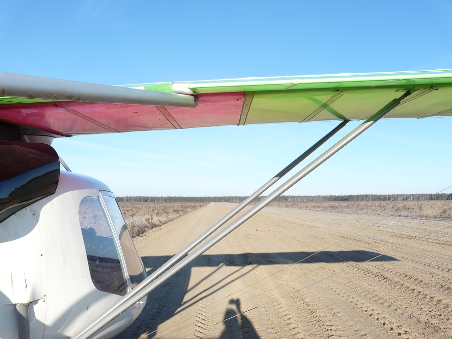 Решил сегодня по окрестностям помотаться на Птенце. Соскучился по самолётику своему очень. Лечу над полем с дорогой. Ну поле и поле. Мало ли в окрестностях полей с дорогами. Только дорога, какая-то прямая. Пригляделся , полоса. Длинная! Километра два! На поле ни души, ни самолёта. По всем правилам решил сначала проходик сделать. Выровнялся на 2-х метрах и полетел. Надоело. Слишком длинная полоса для Птенца. Сел. Следы от Птенца были первыми самолётными следами на этой полосе. Вдруг подходит мужик и улыбаясь говорит, что рад познакомиться. Я предложил внести полосу в базу АОПА, но он попросил пока этого не делать и звал в гости в следующий раз.