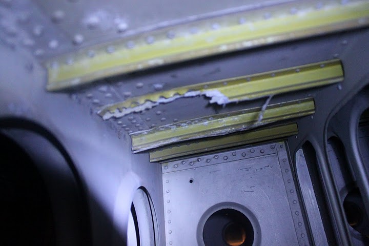 Затем перебрался в фюзеляж - вот так выгляди коррозия одного из бортовых стрингеров