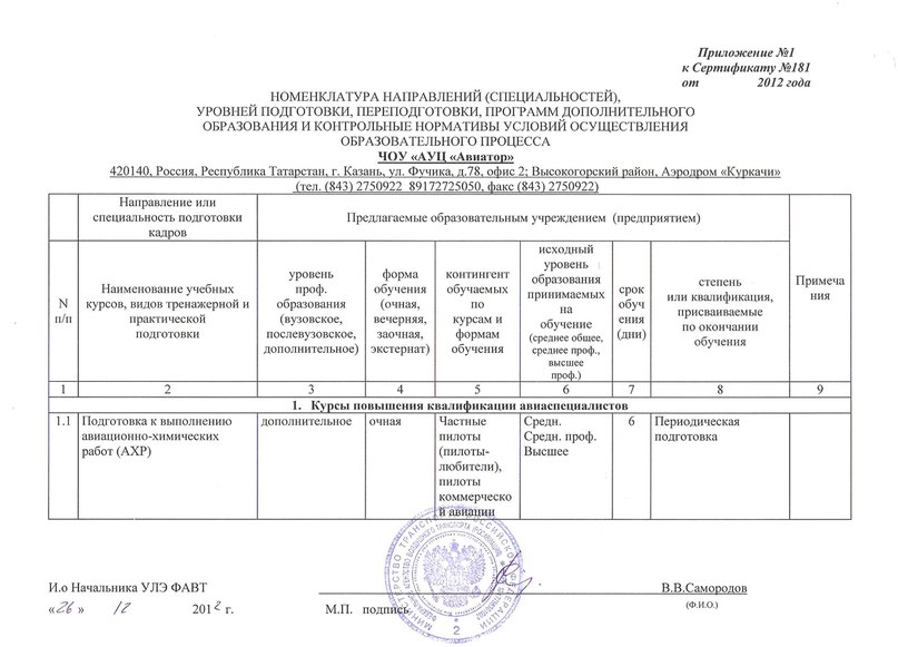 Авиационный Учебный Центр "АВИАТОР" продлил срок действия Сертификата АУЦ №181 до 25.12.15, со всеми предыдущими видами подготовок.