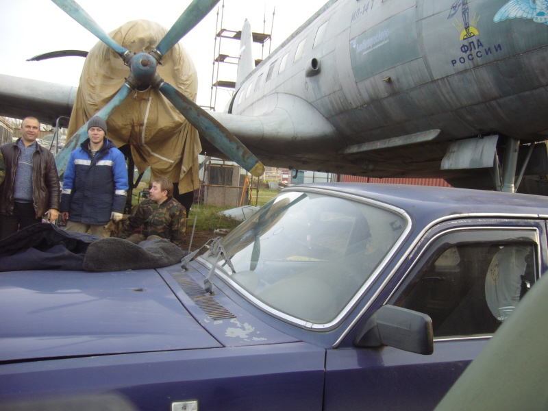 А вот и красавец Ил выглядывает поверх контейнеров Подошел поздоровался с Андреем и его друзьями, помогающими в ремонте. На данном этапе ребята красили стойку шасси и собирались устанавливать отремонтированный бак масляного радиатора. О том как это было читаем ниже..