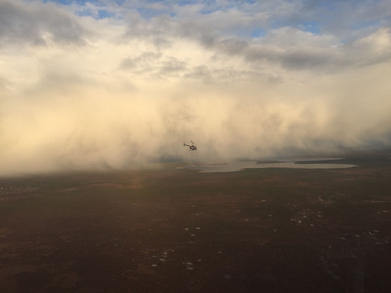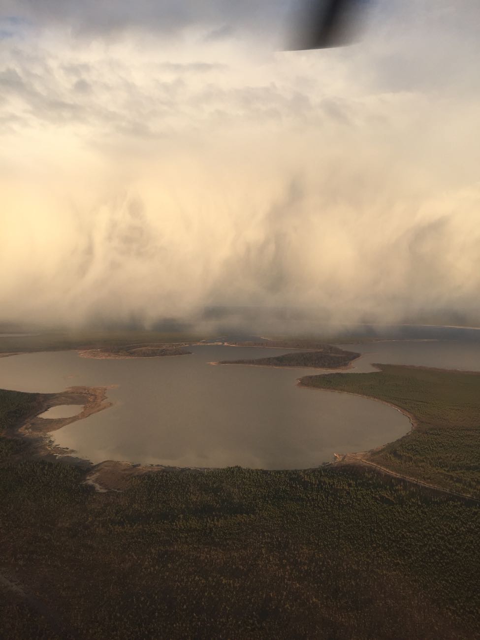 Перед вылетом из Куопио... На пути домой - на фоне снежного заряда. Грибной снег практически