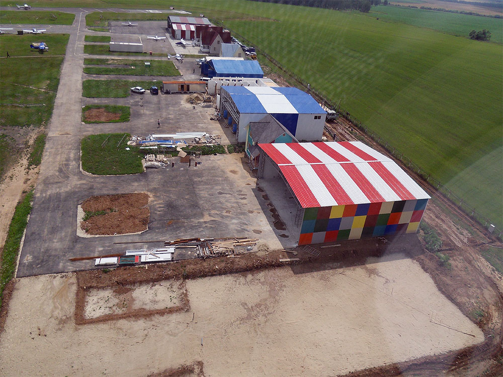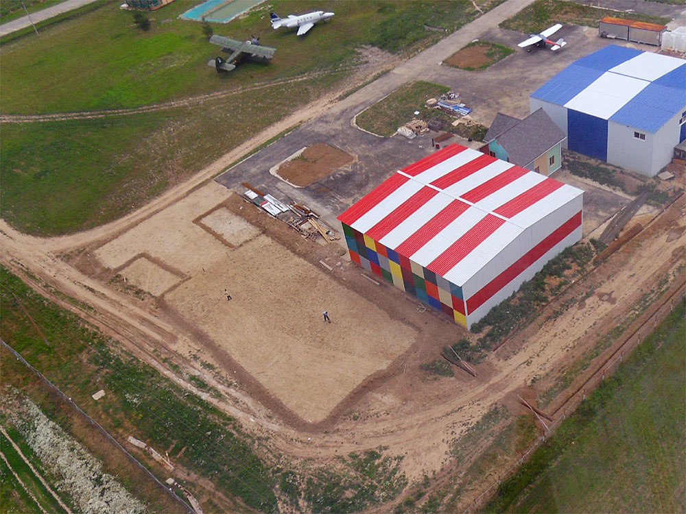 P.S. Неожиданная для меня новость - у меня будет сосед. Первоначально говорили, что "калашный ряд" закончится мной, ан нет... Влезет еще один небольшой ангар. Уже начаты подготовительные работы, выравнивается и отсыпается участок - это видно на фото. Теперь-то точно - финиш. По крайней мере в данном ряду. А вообще, Северка застраивается нешуточными темпами!!! Похоже люди поверили в светлое авиа-будущее державы и начали вкладывать деньги в инфраструктуру.