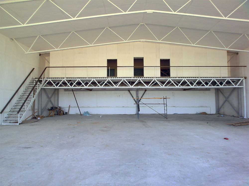 Глобальные задачи: Завершив изготовление антресоли, начать на ней работы по устройству помещений и их отделке. Приступить к воротам ангара. Начать работы по водоснабжению и канализации комплекса.