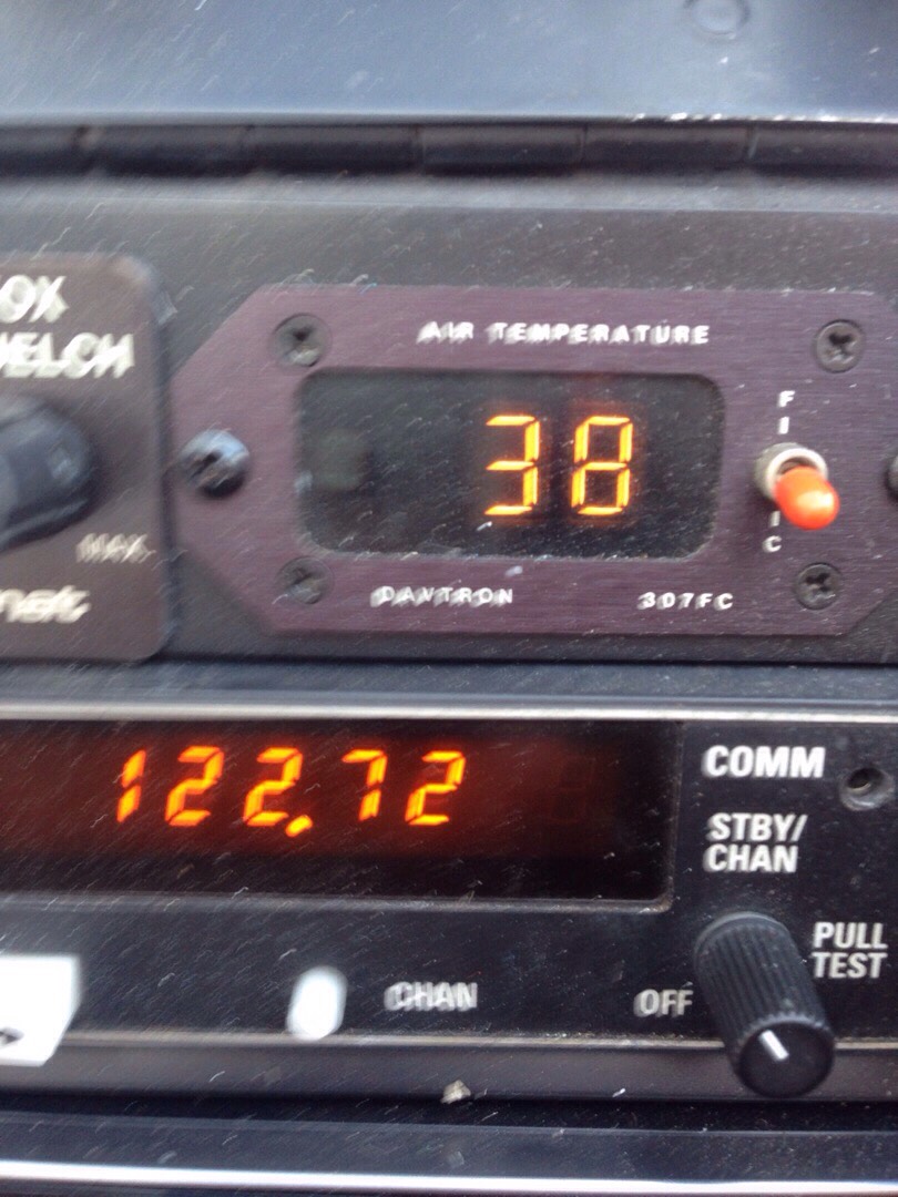 Полет в цитадель греха запомнилась адской жарой. Забортный воздух (на высоте гор!) - 38°С (фото) Это значит, в кабине - не менее 45. Металлические детали органов управления обжигают. Яйца можно жарить (куриные, конечно).