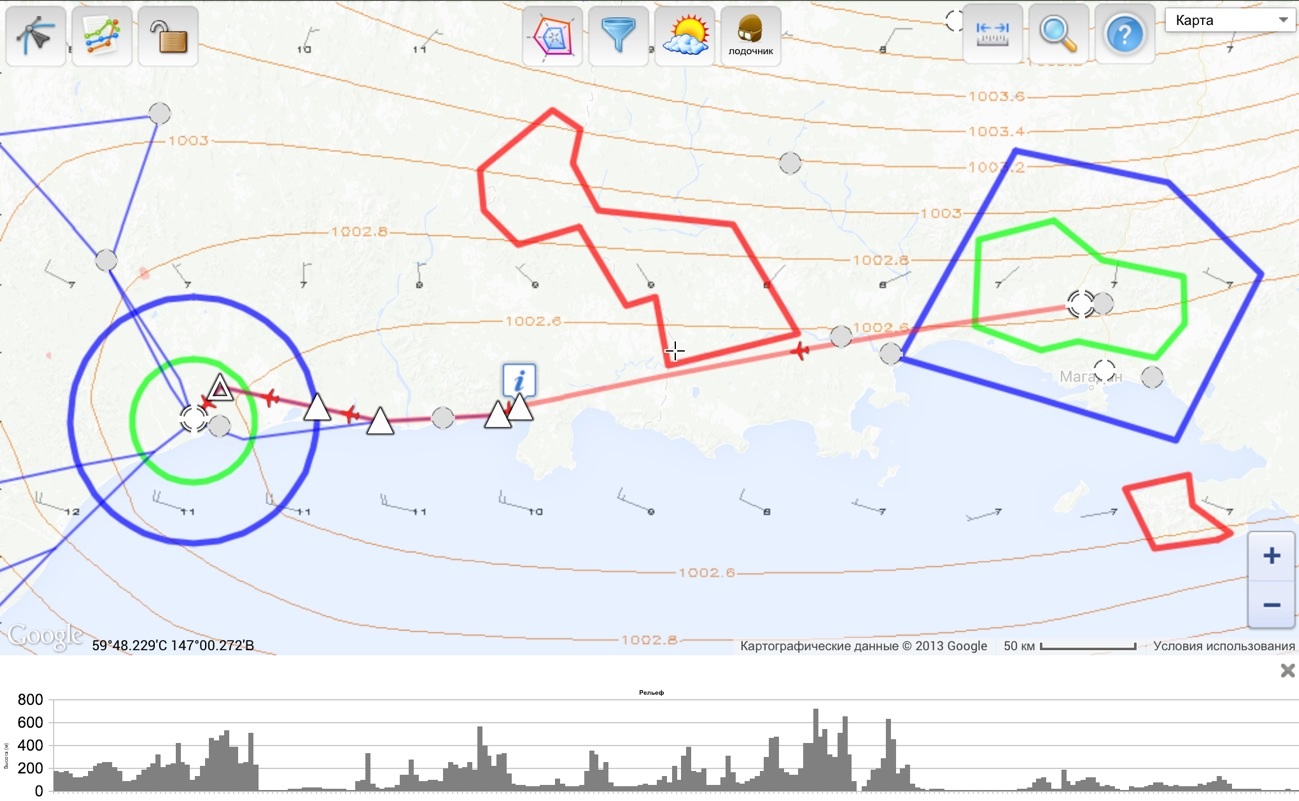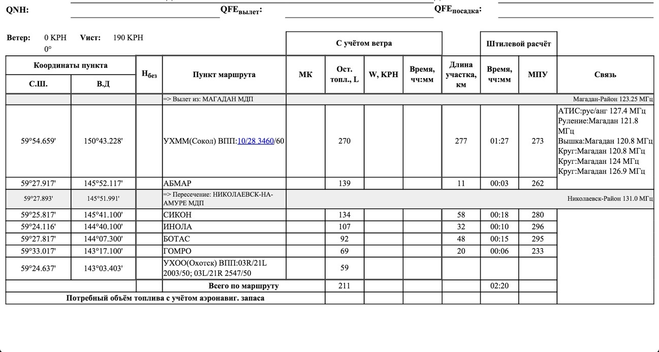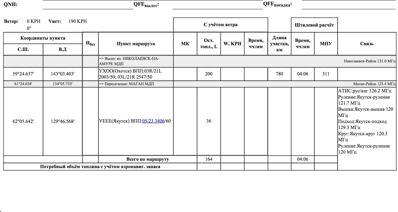 Ветер по высотам на схеме маршрута рассчитан на 900м
