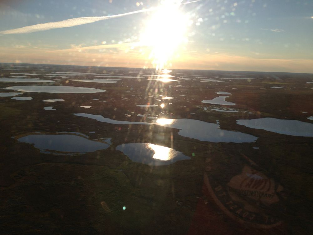 долго на Печоре не задерживались и минут через двадцать двинулись дальше над закромами Родины - к тому времени доминирующие леса, уже стали смениляться угольными шахтами и нефтянными вышками ... войдя в Заполярье новички приняли поздравления от бывалого полярника ... :P ... и вот она, тундра знакомая по Клубу Путешественников и В Мире Животных ... поскольку полёт не был самоцелью мы немного позволили себе понаблюдать за местной фауной ...