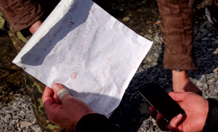 Но по пути уткнулись в пол-литровую пластиковую бутылку с запиской внутри на англицком языке