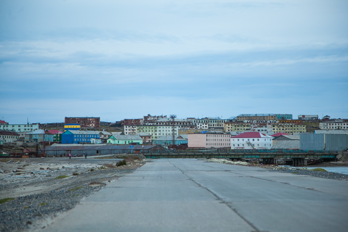 До города было недалеко - всего 3 км. Нам в напутствие сказали, что сегодня на дороге видели белых медведей, надо быть поосторожнее. Но, впрочем, "вас много, и вряд ли они на вас будут нападать..."