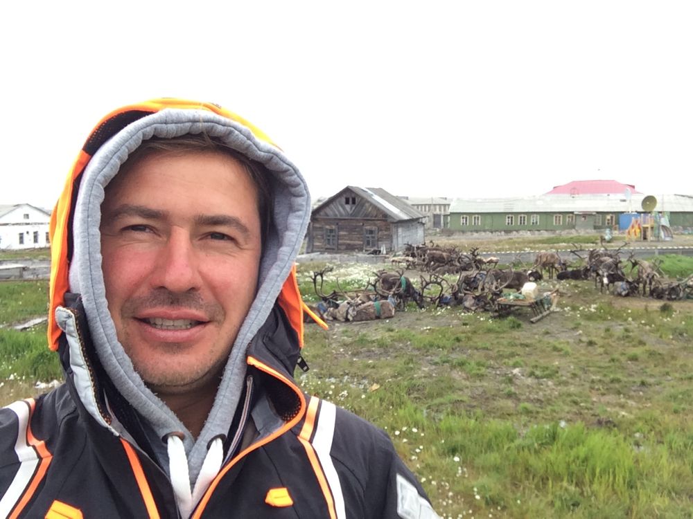 Селфи с оленями. Кириллу так и не удалось договориться о нашей доставке в аэропорт на местном транспорте - точно "ваши деньги здесь на хрен никому не нужны"