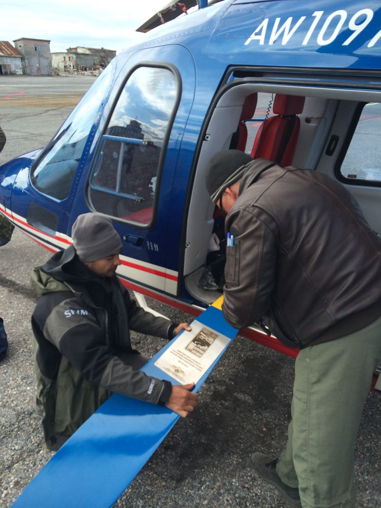 В аэропорту жизнь началась. Мы вынули из багажника доп. бак и, наконец, заглушили все лишние отверстия. Владик достал монумент - лопасть от Ан-2, я - табличку из нержавейки - работа над монументом вступила в завершаю стадию. Церетели курил за углом, кусая свои локти. Ветер в 30-40 узлов размахивал незашвартованными лопастями наших Робинсонов. Все и всё было готово к отлету на Север - только заправщик не торопился. Он, оказывается, ждал нас вчера до восьми вечера и, не дождавшись, обиделся. Поэтому сегодня у него выходной, он отдыхает, а деньги ему (как и всем там) наши на хрен не нужны. Это несмотря на то, что керосин был предоплачен, что заправщику звонил директор аэропорта и т.п. В общем, мы уже поняли, что сегодня никуда не летим - но тут появился заправщик. Он сказал, что благородно решил содействовать нашей гуманитарной миссии, но соврал, подлюка: на нашу удачу в Амдерме сел на заправку нежданный Ми-8 из Нарьян-Мара.