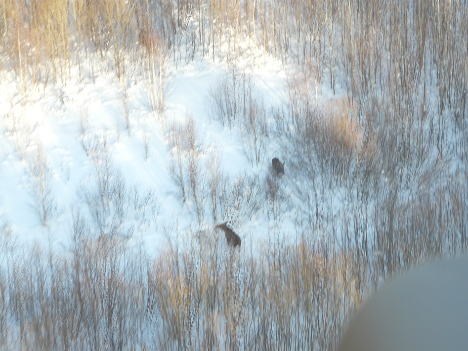 . На обратном пути лосей сфотографировали. Я вот удивляюсь, мы сделали 4 прохода, а они спокойно стояли и жевали что-то.