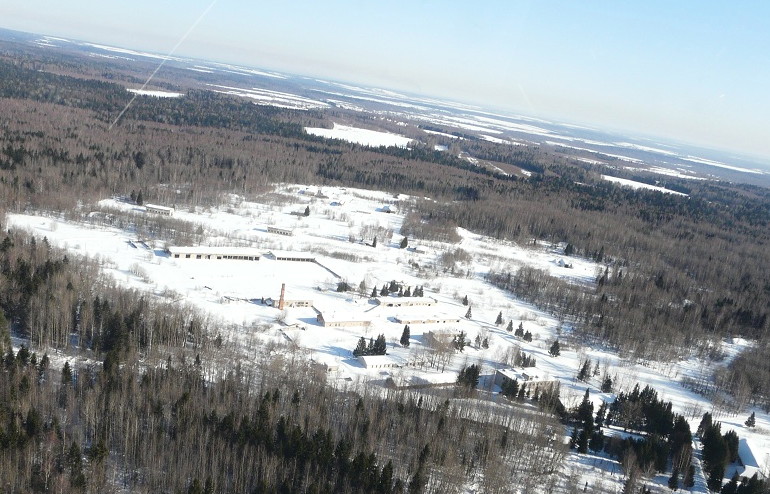 Приземлиться прямо в музее, как то не решился. Приземлиться перед главным входом, особо места не было. Зашли с тылу. Метров 200 по следам снегохода и покатушечной ДЕЙСТВУЮЩЕЙ узкоколейки.