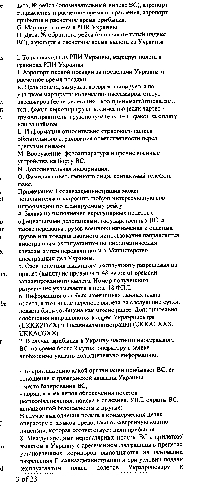 первое с чего начинается полет в Украину: вы должны подать заявку на такой полет. Заявка эта пишется в Центр координации полетов. бланка как такового нет, но в АиПе есть список пунктов, которые вы должны заполнить. Скан прилагаю:
