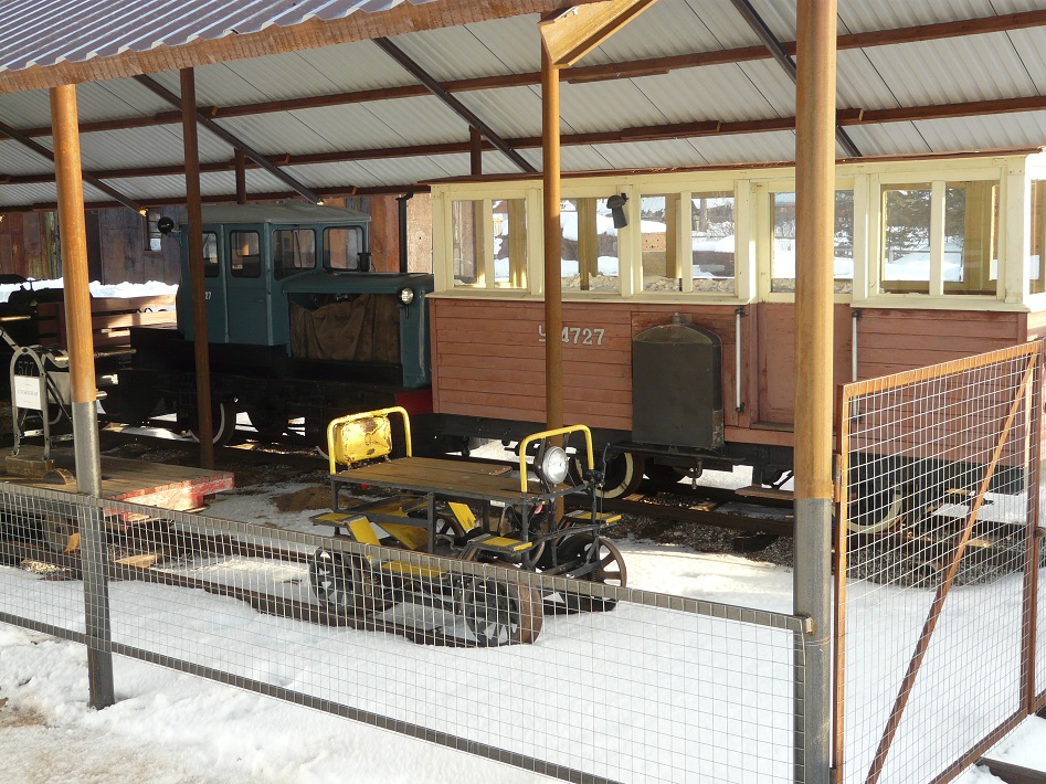 В самом музее действующей техники мы не увидели. Судя по рельсам, её прячут в депо(ангаре, сарае, гараже). Не работающую технику мы немного рассмотрели. В музее ни души. Нет, мы были согласны заплатить за вход и экскурсию! Вот только не нашли кому. По мере нашего приближения к депо, на снегу стали появляться отпечатки немаленьких собачьих лап. Так как людей мы не увидели, значит и собак в случае чего от нас оттащить некому. Мы дали задний ход, попутно фотографируя всё подряд. В общем летом сюда нужно прилететь. В часы работы музея