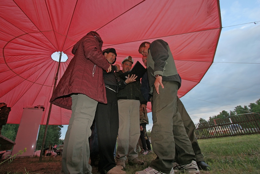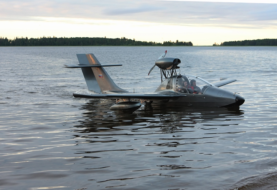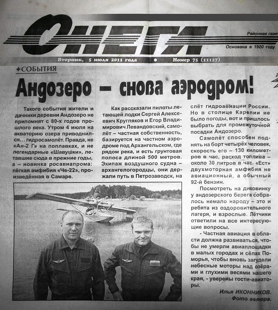 А вот и сам, - помогает вытащить аппарат на берег и фотографируется с пилотами-архангелогородцами: