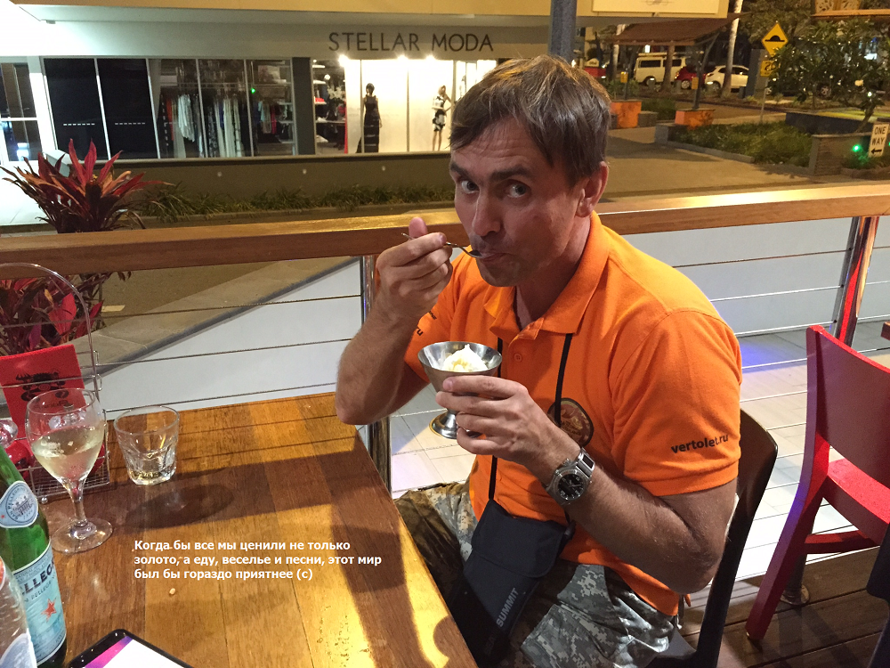 Наши путешественники хотели переночевать на Palm Island и даже совершили там посадку. Но местные пилоты в один голос отговорили их оставлять на ночь борта, поскольку местные аборигенские дети любят курочить воздушные суда - случаи уже были. Поэтому вертолетчики благоразумно перебрались на материк. И нашли там Место - The BAR