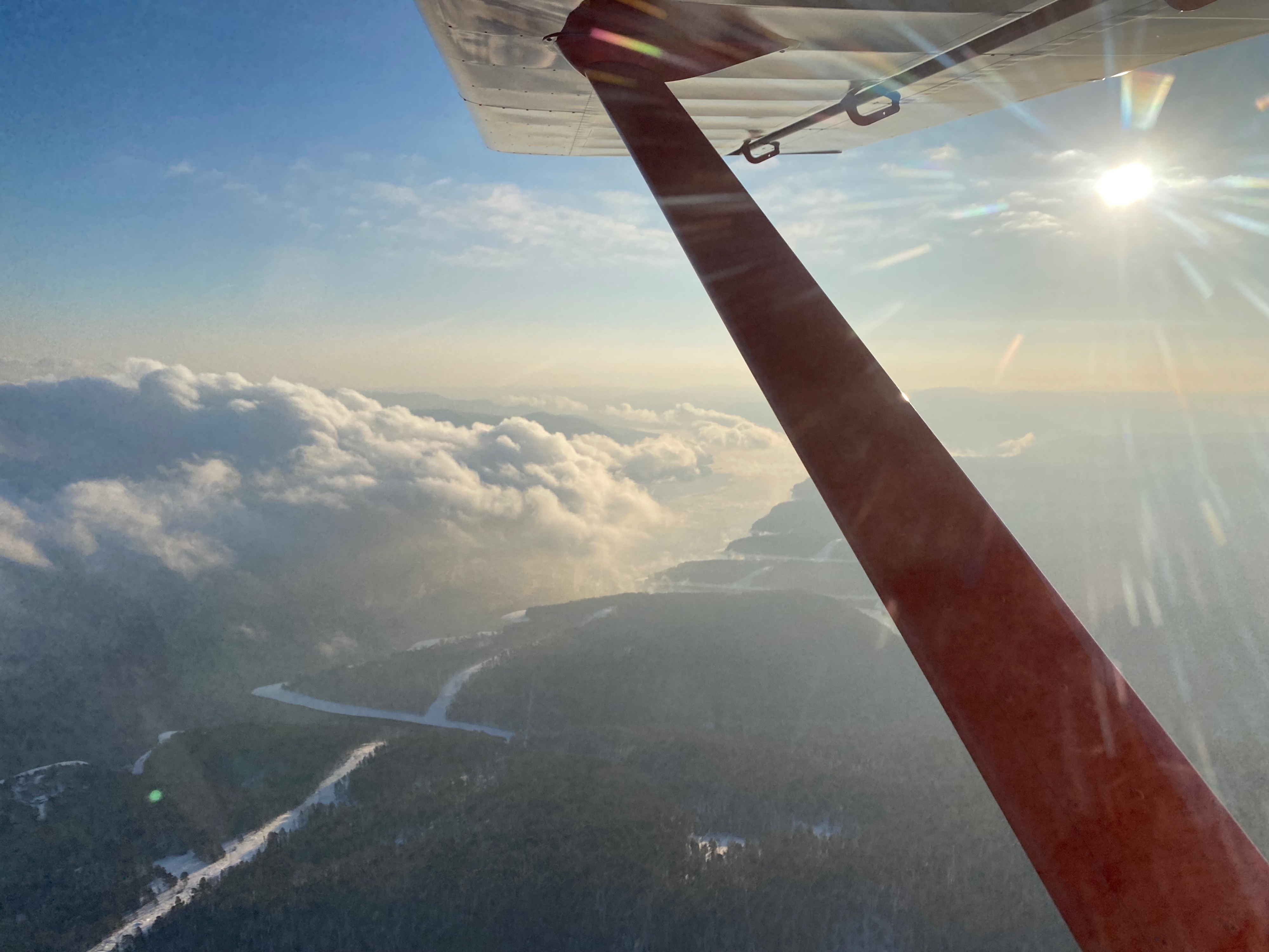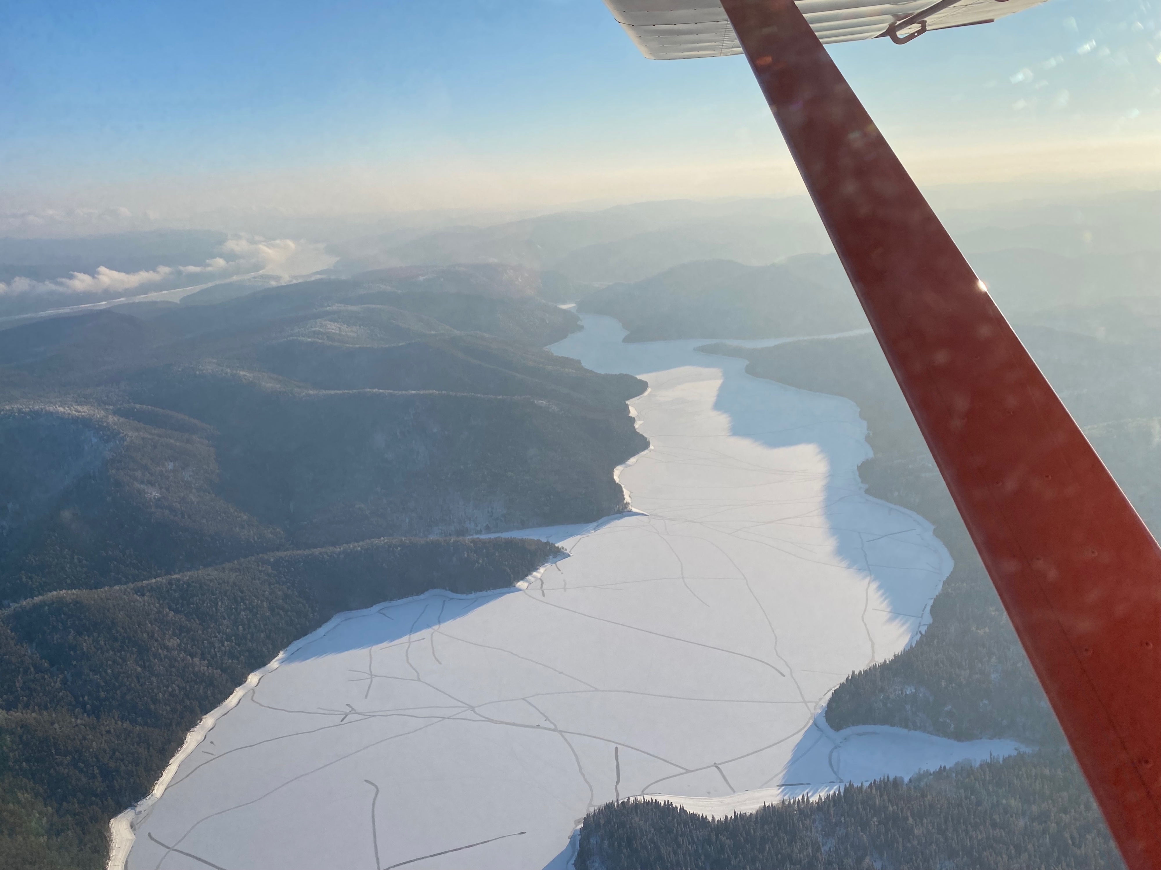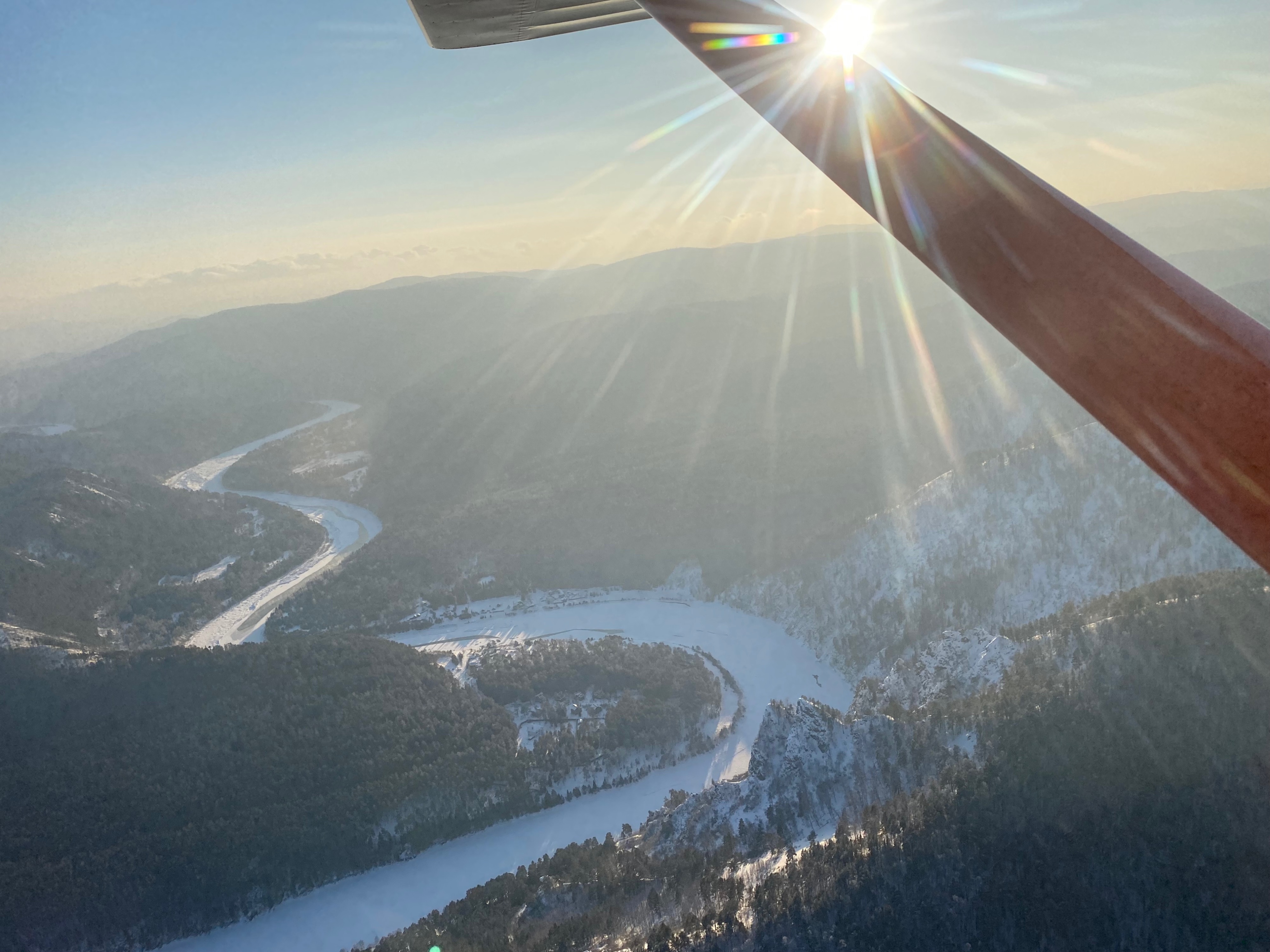 Вчера сибирская погодка подарила превосходный лётный день. QNH 1034, температура за бортом на высоте 1000м. -18 градусов , правда юго-западный ветерок на этой высоте был приличный-40-45 км/ч. Решили вдвоём с товарищем смотаться на нашем Рыжике по красивому горно-речному маршруту до соседнего города Назарово. Заправили 90л. АИ-95. Наш маршрут пролегал над красивыми зимними гористыми берегами Енисея, с выходом на всё ещё, не смотря на середину декабря, свободное от льда (глобальное потепление?) красноярское море в районе ГЭС. Заливы водохранилища, однако уже были белыми от снега лежащего на ледяном покрове, интересно прочен-ли он для приёма на свою ровную поверхность полутонны веса;)? Шли мы на 950-1200 метров по QNH. В кабине настолько тепло, что иногда я прикрывал заслонку тоннеля от двух радиаторов под капотом и излишки горячего воздуха улетали под фюзеляж, согревая Сибирское небо. Атмосфера, несмотря на горный рельеф была совершенно спокойной и с учётом встречного ветра со скорость 40-45 км/ч мы установили режим 5000-5200 оборотов в минуту, приборная скорость при этом составила 185-204 км/ч. Винт на Рыжике-французский DUC регулируемого на земле шага. Вскоре после «бескрайнего моря тайги» к радости любого пилота однодвигательнго сухопутного появились первые большие поля. Подошли к Краснополянску (Красная поляна на картах), но в моем детстве эта замечательная русская деревня звучала именно как Краснополянск (чем мы хуже Красноярска:)? Здесь прошли мои самые яркие месяцы школьных каникул! Мотоцикл «Восход-2М», заправленный слитым с ГАЗ-53 у дяди Гени банкой бензина предварительно размешанного с темно-синим маслом(не помню уже его названия-автол?). Помню незабываемые ощущения от быстрой езды с ветерком по полевым выкатанным в черноземе дорогам-как по немецкому автобану-до того мягко и плавно! Ездил с отцом на импровизированный полевой аэродром за околицей села, куда каждое лето из районного центра прилетал на АХР желтобокий Ан-2. Летчики, которых я считал самыми крутыми и счастливыми людьми на свете (молоденький второй и невысокого роста сухопарый командир-постарше) разрешали посидеть в кабине, куда нужно было протиснуться мимо бака для химии, с непередаваемым «ароматом»! Детство.. Вираж над домами деда Саши-фронтовика прошедшего финскую и ВОВ и дяди Гени (по-моему даже гараж где стоял регулярно угоняемый мной чёрный «Восход») сохранился! Прошли над замечательным аэропортом «Назарово» с асфальтовой полосой 1200м. в СССР он принимал Як-40 летавший два рейса каждый день из Красноярска (расстояние по прямой 145км.) билет стоил 8 рублей. Теперь это посадочная площадка, о которой заботится и поддерживает ее в отличном состоянии местный частный пилот. Даже полуразрушенное здание аэровокзала восстановили! Обидно до боли, что государство никак не помогает, а даже наоборот мешает таким людям. В ангарах живут пара Аэропрактов-22 и один R-44. Летом можно всегда заправиться и переночевать. Зимой ребята летают с укатанной для лыжного шасси полосы. Мы на колёсах и поэтому, к сожалению не можем подсесть на этот гостеприимный аэродром. Облетели Назарово, сверху в центре города хорошо был узнаваем ДК «Угольщик» от которого и ходил в аэропорт желтый ЛИАЗ-677 (с бутылочным звуком под полом). Слетали на угольный разрез, где в СССР работал самый большой в мире шагающий экскаватор(мой местн