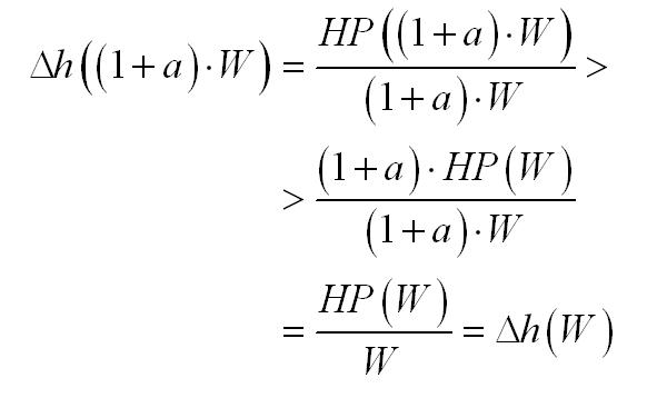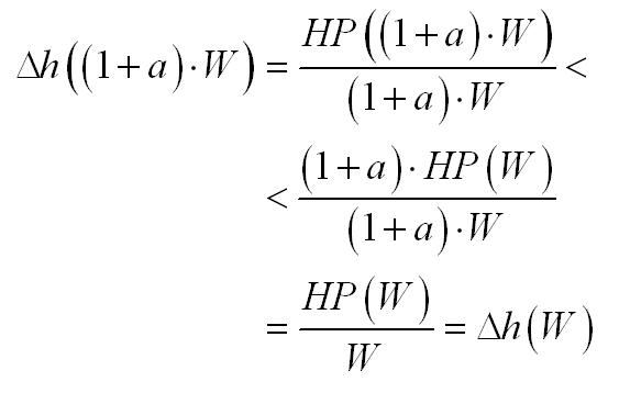 HP(1.01W) < 1.01HP(W), математически это означает что для достаточно малых величин