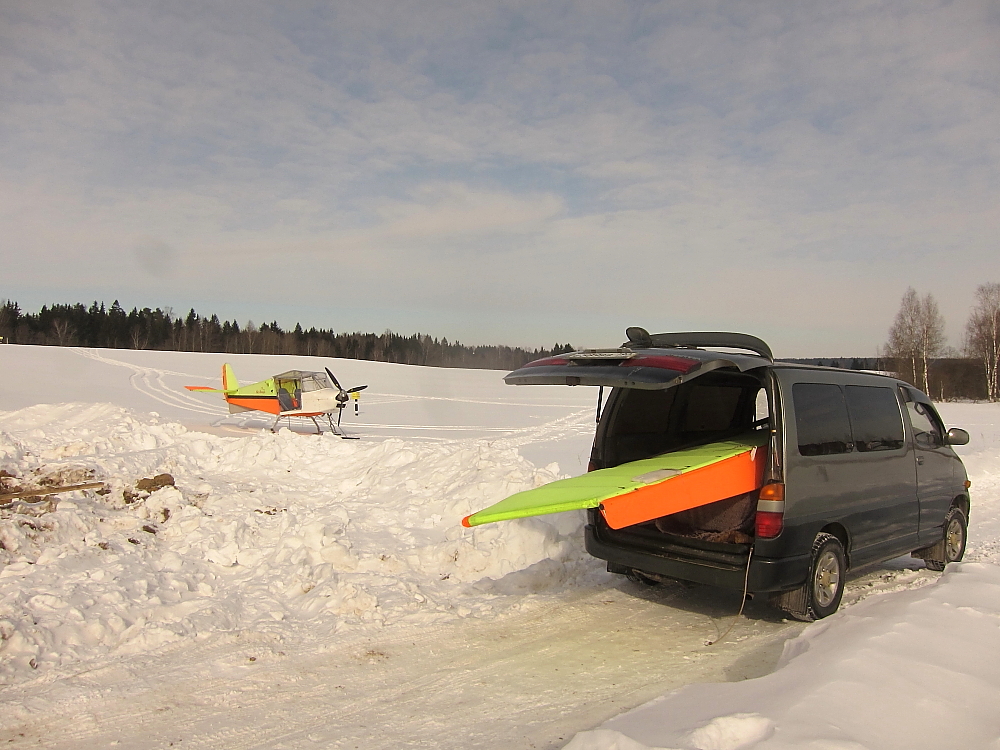 После того как убедился, что самолет не проваливается на целине, подвез крылья.