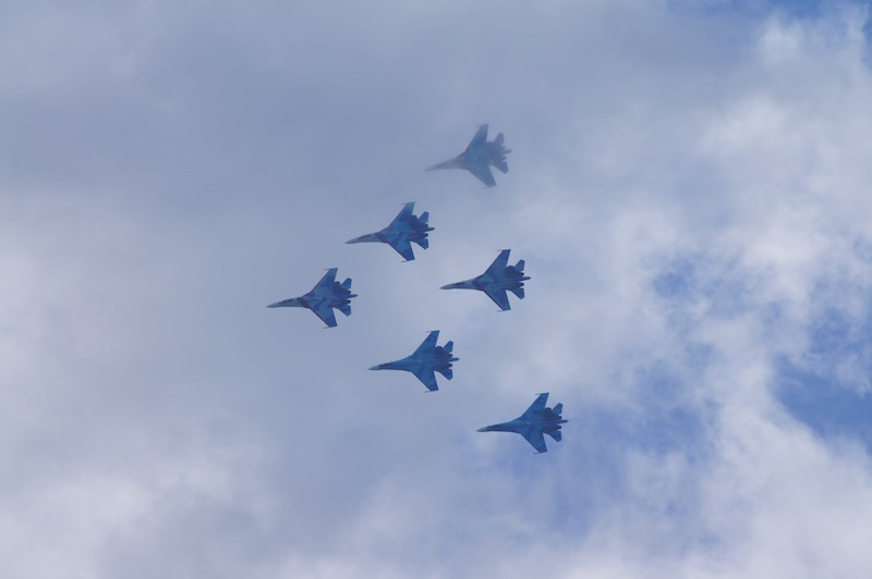 На десерт пилотажна группа су-27, 6 бортов пришло из Липецка (около 4 тыс км в одну сторону) в сопровождении ил-74, генералом и всем персоналом включая врачей команды.
